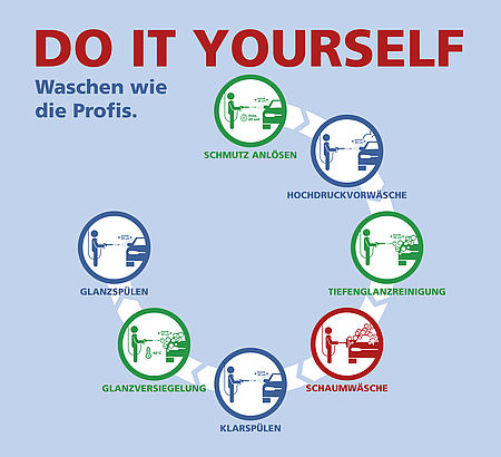 Egal ob Sie Ihren Wagen vor der Waschstraße intensiv vorreinigen oder von Anfang bis Ende komplett selbst waschen möchten. Für Ihre individuelle Autopflege stehen unsere SB-Waschboxen bereit. Hier entscheidet jeder selbst, wie viel Pflege sein Auto benötigt. Nach Auswahl von 7 aufeinander folgenden Reinigungsschritten erstrahlt das Fahrzeug in neuem Glanz. Sogar eine Glanzversiegelung lässt sich auftragen, mit der Ihr Lack vor Umwelteinflüssen geschützt wird. So bekommt auch der Individualist die gewohnt gute CleanCar Qualität.