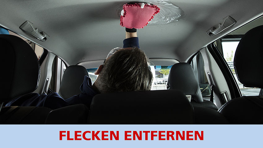 Bei der Himmelreinigung shampoonieren wir den Dachhimmel und die Säulen mit Spezialreiniger. So entfernen wir unter anderem Flecken und Nikotinbelag.