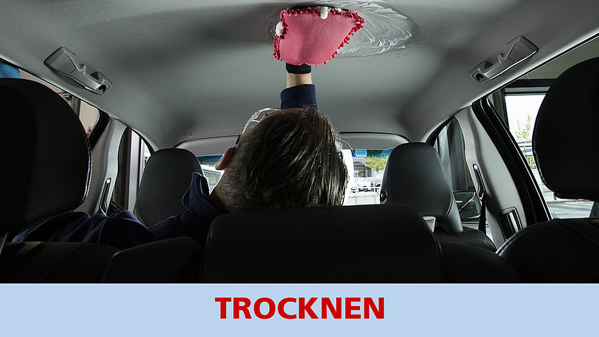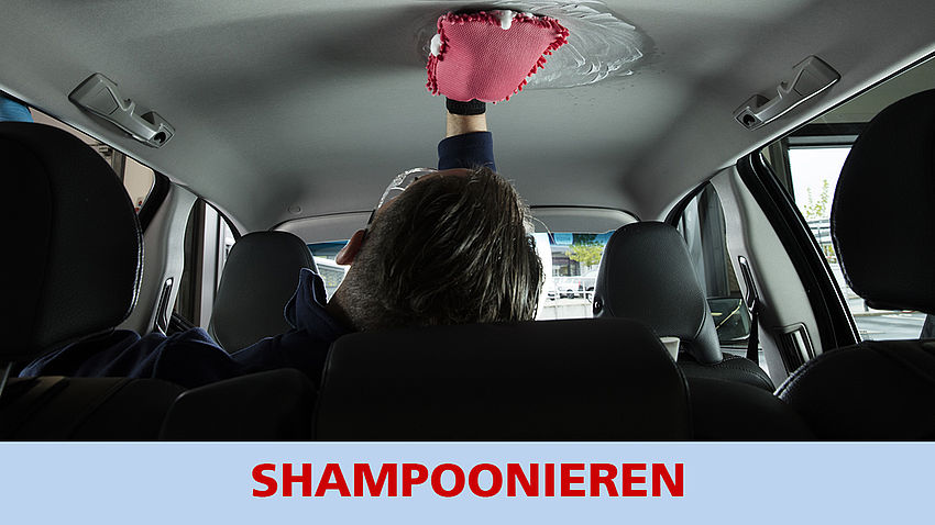 1. Sonnenblenden, Handgriffe, Säulen und den Dachhimmel shampoonieren wir schonend mit Spezialreinigern.