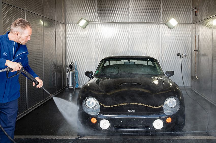 Eine Handwäsche von unseren Profis ist denkbar schonend und gründlich. Genau richtig für besonders wertvolle Fahrzeuge.
