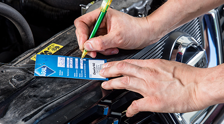 Abschließend erneuern wir den Ölwechsel-Anhänger mit allen relevanten Daten und tragen die Werte auf Wunsch auch in Ihr Serviceheft ein.