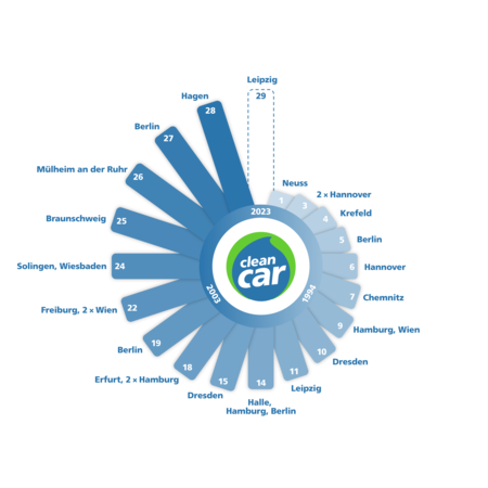 Kerngeschäft der Düsseldorfer CleanCar AG sind Hochleistungs-Auto-Wasch-Center mit modernsten, selbst entwickelten Verfahrenstechniken. Darüber hinaus gehören zu unserem Portfolio hochwertige CarCosmetic Services und Tankstellen. Jedes Jahr waschen, reinigen und pflegen wir 3 Millionen Autos. In Spitzenzeiten sind das über 120 Wäschen pro Stunde pro Filiale. Unseren Umsatz von rund 115 Millionen Euro erwirtschaften wir mit über 400 engagierten und kompetenten Mitarbeitern.